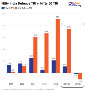 The Nifty Defence Index has been a juggernaut, outpacing the Nifty 50 benchmark over the last few years. A mix of low supply, supportive policies, and undervaluation catapulted defence stocks to new heights in 2024.