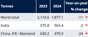 • China: 1,411t in 2024, driven by economic uncertainty and US tensions.