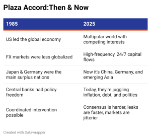 - Can a Plaza Accord 2.0 work in a multipolar world — where trust is thin and power is distributed?