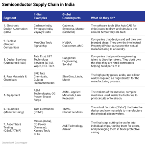 A semiconductor industry is not a single factory. It is an intricate ecosystem where multiple layers must function in harmony. India’s strategy reflects this reality by targeting the entire value chain: